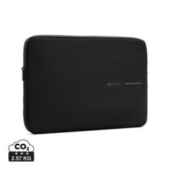 Pokrowiec na laptopa 16”, wykonany z RPET, wodoodporne wykończenie, dzięki zastosowaniu technologii AWARE™ wykorzystane materiały są identyfikowalne z pochodzenia, ślad węglowy produktu: 2,57 kg CO2