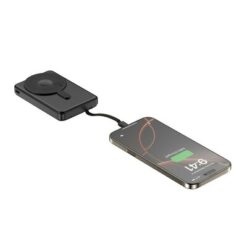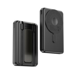 Power bank 10000 mAh, ładowarka bezprzewodowa 15W, możliwość ładowania 3 urządzeń jednocześnie, zintegrowane kable USB-C oraz iOS, wykonany z ABS z recyklingu, zawartość materiałów z recyklingu obliczona na podstawie wagi całkowitej przedmiotu: 24%