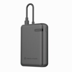Power bank 10000 mAh, szybkie ładowanie PD do 20W, możliwość jednoczesnego ładowania dwóch urządzeń, port USB-C oraz wbudowany kabel USB-C, szybkie ładowanie samego power banku, wykonany z recyklingowanego ABS i PC z certyfikatem RCS, zawartość materiałów z recyklingu: 20%, opakowanie ograniczające użycie plastiku, wolny od PVC