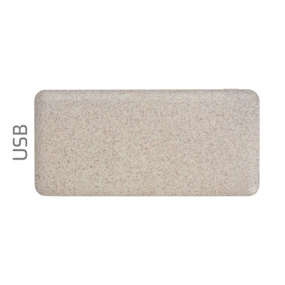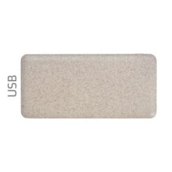 Płaski power bank 10000 mAh, wykonany z mieszaniny 35% słomy pszenicznej i ABS, 4 diody wskazujące poziom naładowania, wbudowany akumulator litowo-polimerowy klasy A o dużej gęstości i trwałości, w pełni naładowane urządzenie może naładować telefon do 4 razy, wejście micro USB 5V/2A, wejście USB typu C 5V/2A, wyjście USB typu C 5V/2A, wyjście USB 5V/3A, kabel micro USB z TPE w komplecie, nie zawiera PVC, ślad węglowy produktu: 3,75 kg CO2