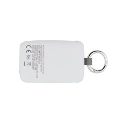 Power bank 4000 mAh, karabińczyk i lampka 1W | Dimetrice z nadrukiem Twojego logo, materiał: metal, plastik, kolor: biały