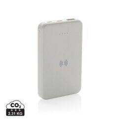 Bezprzewodowy power bank 5000 mAh, ładowarka bezprzewodowa 5W, diody wskazujące poziom naładowania, wykonany z ABS z recyklingu z certyfikatem RCS, całkowita zawartość materiałów z recyklingu obliczona na podstawie wagi całkowitej przedmiotu: 26%, wbudowany akumulator litowo polimerowy o dużej gęstości, wejście micro USB 5V/2A, wejście USB typu C 5V/2.4A, wyjście USB typu C 5V/2.4A, wyjście USB 5V/2.4A, kabel z TPE z recyklingu z certyfikatem RCS w komplecie, w pudełku z papieru kraftowego z certyfikatem FSC® mix, ślad węglowy produktu: 2,31 kg CO2