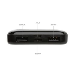 Power bank 5000 mAh, 4 diody wskazujące poziom naładowania, wykonany z ABS z recyklingu z certyfikatem RCS, całkowita zawartość materiałów z recyklingu obliczona na podstawie wagi całkowitej przedmiotu: 22%, wbudowany akumulator litowo polimerowy o dużej gęstości, wejście micro USB 5V/2A, wejście typu C 5V/2.4A, wyjście USB 5V/2.4A, wyjście typu C 5V/2A, w komplecie kabel z TPE z recyklingu z certyfikatem RCS, w pudełku z papieru kraftowego z certyfikatem FSC®, ślad węglowy produktu: 2,33 kg CO2