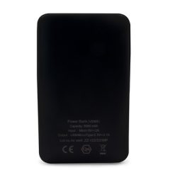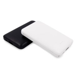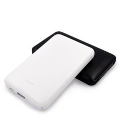 Power bank 5000 mAh z 2 zintegrowanymi kablami: USB-C oraz micro USB, w komplecie adapter z wejściem micro USB i końcówką kompatybilną z urządzeniami iOS, 4 diody wskazujące poziom naładowania, wejście USB-C, kabel USB-C w komplecie
