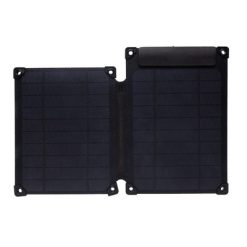 Panel słoneczny 10W, wskaźnik prędkości ładowania, stojak, wodoodporny IPX6 (całkowite zabezpieczenie przed strumieniem wody płynącej z różnych kierunków z wydajnością do 100 litrów na minutę), wyjścia USB i USB typu C (5V/1A max.), wykonany z PET i ABS z recyklingu z certyfikatem RCS, w pudełku z papieru kraftowego z certyfikatem FSC®, ślad węglowy produktu: 12,32 kg CO2