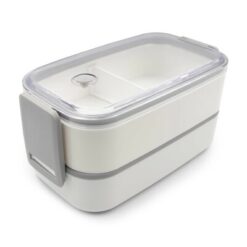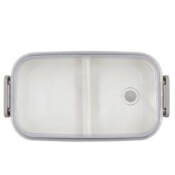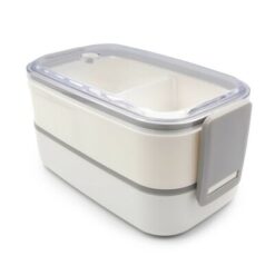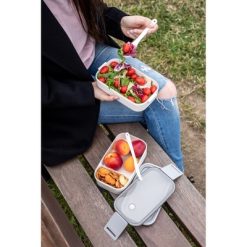 Pudełka śniadaniowe 2 w 1, 2×700 ml, szczelne, zamykane na 2 klipsy, w komplecie nóż i łyżkowidelec, górne pudełko z wyjmowaną przegrodą i przezroczystym wieczkiem