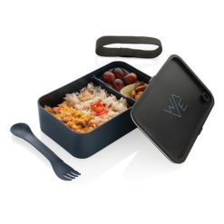 Pudełko śniadaniowe 1,2 L RPP, łyżkowidelec z nadrukiem Twojego logo, materiał: pp, silikon, kolor: niebieski