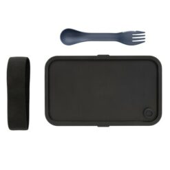 Pudełko śniadaniowe 1,2 L, lunchbox, wykonany w 93% z PP pochodzącego z recyklingu z certyfikatem GRS (Global Recycled Standard) który gwarantuje, że wykorzystane materiały pochodzą z recyklingu, w komplecie łyżkowidelec i elastyczny pasek, nie należy myć w zmywarce i używać w kuchence mikrofalowej