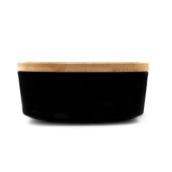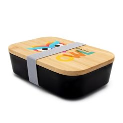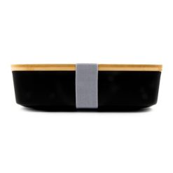 Pudełko śniadaniowe 850 ml, bambusowe wieczko | Weston z nadrukiem Twojego logo, materiał: guma, bambus, pp, kolor: czarny