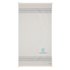 Ręcznik, lekki, wysoce chłonny, odporny na piasek i szybkoschnący, można go wykorzystać również jako koc czy obrus, wykonany z mieszanki 88% bawełny z certyfikatem OEKO-TEX (w procesie produkcji nie są wykorzystane żadne szkodliwe substancje lub barwniki) oraz w 12% z bawełny z recyklingu, dzięki zastosowaniu technologii śledzącej AWARE™ wykorzystane włókna są identyfikowalne z pochodzenia, 2% wpływów z każdego sprzedanego produktu jest przekazywane na rzecz Water.org, można prać w pralce, wymiar 100 x 180 cm (wyprodukowany w Europie / made in Europe)