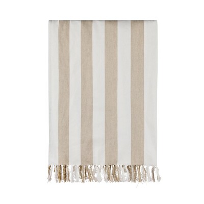 Ręcznik plażowy, wykonany w 100% z bawełny o gramaturze 200 g/m2, wykonany w 70% z bawełny z recyklingu i w 29% z poliestru z recyklingu z certyfikatem GRS