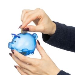 Skarbonka „świnka” z nadrukiem Twojego logo, materiał: plastik, kolor: niebieski