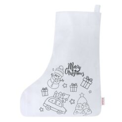 Skarpeta świąteczna do kolorowania, świąteczny wzór, kredki z nadrukiem Twojego logo, materiał: rpet, non-woven, kolor: biały