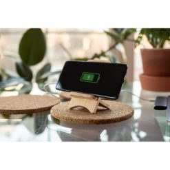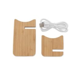 Składana bambusowa ładowarka bezprzewodowa 10W B’RIGHT, stojak na telefon | Barbra z nadrukiem Twojego logo, materiał: bambus, kolor: drewno