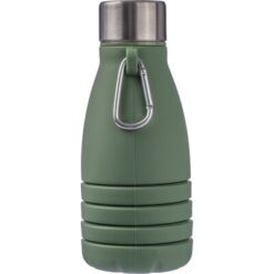 Składana butelka sportowa 550 ml z karabińczykiem z nadrukiem Twojego logo, materiał: aluminium, pp, stal nierdzewna, silikon, stal, kolor: zielony