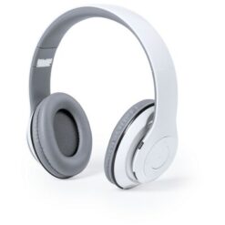 Składane bezprzewodowe słuchawki nauszne, radio z nadrukiem Twojego logo, materiał: plastik, kolor: biały