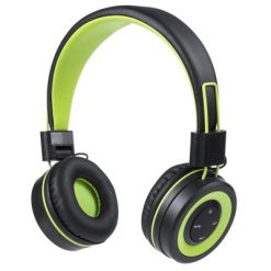 Składane bezprzewodowe słuchawki nauszne z nadrukiem Twojego logo, materiał: plastik, pu, kolor: zielony