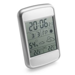 Stacja pogodowa z czujnikiem zewnętrznym z nadrukiem Twojego logo, materiał: hips, lcd, kolor: srebrny