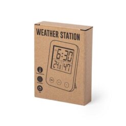 Stacja pogodowa z nadrukiem Twojego logo, materiał: plastik, bambus, kolor: brązowy