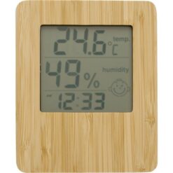 Stacja pogodowa z nadrukiem Twojego logo, materiał: plastik, bambus, kolor: drewno