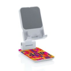Stojak na telefon, tablet z nadrukiem Twojego logo, materiał: plastik, silikon, kolor: biały