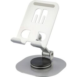 Stojak na telefon funkcją obrotu o 360 stopni, składany na płasko, zapakowany w białe pudełko, produkt wykonany z aluminium