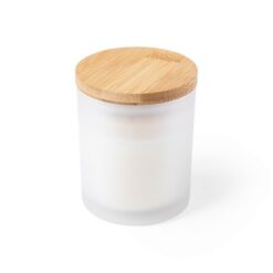 Świeczka zapachowa z nadrukiem Twojego logo, materiał: bambus, szkło, kolor: biały