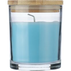 Świeczka zapachowa z nadrukiem Twojego logo, materiał: bambus, szkło, wosk, kolor: błękitny