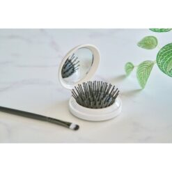 Szczotka do włosów, lusterko, ikona recyklingu na produkcie, zapakowany w woreczek foliowy z recyklingu, produkt wykonany z ABS z recyklingu