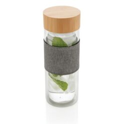 Szklana butelka 360 ml w pokrowcu z nadrukiem Twojego logo, materiał: bambus, szkło, kolor: neutralny