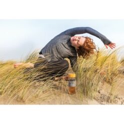 Szklana butelka 360 ml w pokrowcu z RPET, podwójne ścianki ze szkła borokrzemowego odpornego na wysoką temperaturę, 2% zysku ze sprzedaży każdego produktu jest przekazywane do fundacji Water.org, wzór zastrzeżony®