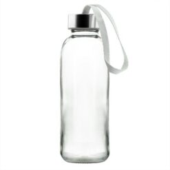 Butelka 420 ml, posiada zakrętkę w srebrnym kolorze oraz uchwyt ułatwiający noszenie, kolorowy pokrowiec w komplecie, produkt wykonany ze szkła i stali nierdzewnej