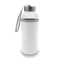 Butelka 420 ml, posiada zakrętkę w srebrnym kolorze oraz uchwyt ułatwiający noszenie, kolorowy pokrowiec w komplecie, produkt wykonany ze szkła i stali nierdzewnej