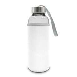 Szklana butelka 420 ml z nadrukiem Twojego logo, materiał: szkło, stal nierdzewna, stal, kolor: biały
