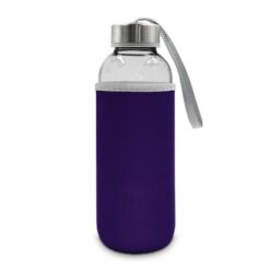Szklana butelka 420 ml z nadrukiem Twojego logo, materiał: szkło, stal nierdzewna, stal, kolor: fioletowy