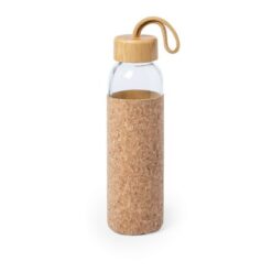 Szklana butelka 500 ml w korkowym pokrowcu, bambusowa zakrętka z uchwytem