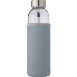 Szklana butelka 500 ml z nadrukiem Twojego logo, materiał: szkło, stal nierdzewna, neopren, stal, kolor: szary
