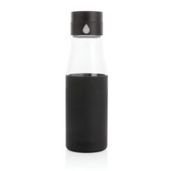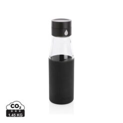 Szklana butelka 650 ml Ukiyo, monitorująca ilość wypitej wody z nadrukiem Twojego logo, materiał: szkło, silikon, kolor: czarny