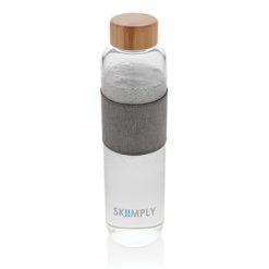 Szklana butelka 750 ml w pokrowcu z nadrukiem Twojego logo, materiał: bambus, szkło, kolor: neutralny