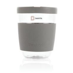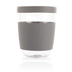 Szklany kubek podróżny Ukiyo 360 ml z nadrukiem Twojego logo, materiał: szkło, silikon, kolor: szary