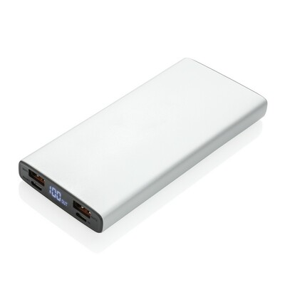 Szybki power bank 10000 mAh z nadrukiem Twojego logo, materiał: plastik, aluminium, kolor: srebrny