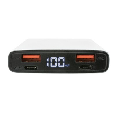 Power bank 10000 mAh, wyjście szybkiego ładowania PD (power delivery) 18W, diody wskazujące poziom naładowania, wykonany z aluminium, wbudowany akumulator litowo-polimerowy klasy A o dużej gęstości i trwałości, w pełni naładowane urządzenie może naładować telefon do 5 razy, wejście micro USB 5V/2A, wejście USB typu C 5V/3A, 9V/2A, 12V/1.5A, wyjście USB 5V/2.1A, wyjście QC 3.0 5V/3A, 9V/2A, 12V/1.5A, wyjście USB typu C 5V/3A, 9V/2A, 12V/1.5A 18W max (PD 3.0), wyjście USB 5V/3A, 9V/2A, 12V/1.5A 18W max (PD 3.0), kabel micro USB z TPE bez dodatku PVC w komplecie, ślad węglowy produktu: 4,82 kg CO2