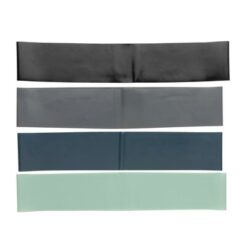 Taśmy oporowe do ćwiczeń, 4 szt., taśmy w 4 kolorach, najjaśniejszy to taśma o najmniejszym oporze, najciemniejszy to największy opór, wykonane z TPE, instrukcja z ćwiczeniami oraz czarne etui w komplecie, ślad węglowy produktu: 0,57 kg CO2