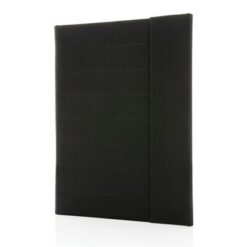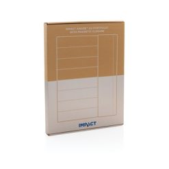 Teczka konferencyjna A4 z notatnikiem (20 kremowych kartek 70 g/m2 w linie z papieru z recyklingu z certyfikatem FSC® (Forest Stewardship Council)), magnetyczne zamknięcie, wewnątrz duża kieszeń, 2 kieszenie na akcesoria i pętla na akcesoria do pisania, poliester z recyklingu wewnątrz i na zewnątrz, wykonana z 3,2 poddanych recyklingowi butelek PET (500 ml), dzięki zastosowaniu technologii AWARE™ wykorzystane materiały są identyfikowalne z pochodzenia, 2% wpływów z każdego sprzedanego produktu z kolekcji Impact jest przekazywane na rzecz Water.org, nie zawiera PVC