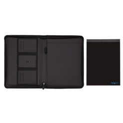Teczka konferencyjna AWARE™ RPET, notatnik z nadrukiem Twojego logo, materiał: papier, rpet, kolor: czarny