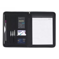 Teczka konferencyjna ok. A4 na zamek, z notatnikiem (20 kartek w linie) i podwójnie zasilanym kalkulatorem