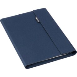 Teczka konferencyjna w formacie ok. A5, zawiera notatnik posiada 64 kartki w linie, przegródki na dokumenty, uchwyt na telefon, zamknięcie magnetyczne, pakowany pojedynczo w kraftowy rękaw, produkt wykonany z RPET
