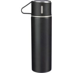 Termos 420 ml, trzy kubki 150 ml z nadrukiem Twojego logo, materiał: metal, bambus, stal nierdzewna, stal, kolor: czarny