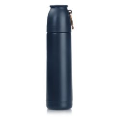 Termos 500 ml Air Gifts z karabińczykiem | Matthew z nadrukiem Twojego logo, materiał: pp, stal nierdzewna, silikon, stal, kolor: ciemnoniebieski