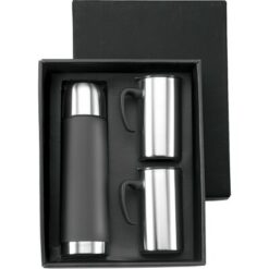 Termos 500 ml i 2 kubki 300 ml z nadrukiem Twojego logo, materiał: plastik, stal nierdzewna, stal, kolor: czarny